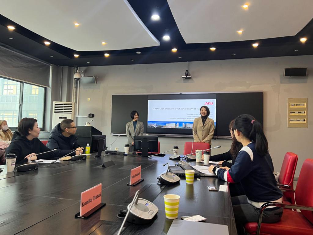 日本立命馆亚洲太平洋大学是一所位于日本九州的国际化私立大学,也是日本大学教育史上第一所完全实施英日双语授课教学的大学。筆内美砂老师基于其跨文化交际课程与公司大外部冯瑞玲老师基于大学英语课程于2023年秋季学期开展跨国在线合作教学(collaborative online international learning,该项目进展顺利,双方师生受益匪浅。鉴于双方在教、学、研各层面上都有着广阔的合作空间,公司特邀请两位教授来访。