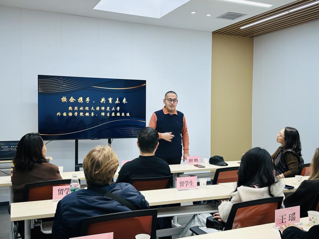 为贯彻落实党中央、国务院关于高校毕业生就业工作的决策部署,认真落实教育部、市教育两委和公司工作要求,完善毕业生就业创业服务体系,进一步深化产教融合,10月28日下午,公司师生赴津品(天津)咨询管理有限公司(以下简称津品公司)开展“访企拓岗促就业,凝心聚力谋发展”共建交流活动。公司党委书记田鹏,党委副书记、纪委书记(兼)苏笛,党委委员、副经理李艳玲带领12名师生代表及5名国际青年人才来华交流项目俄罗斯职工,深入企业进行实地探访,津品公司总裁万晓文和总裁助理郭婕热情接待,为校企双方围绕“外语专业赋能跨境业务”的合作交流拉开序幕。