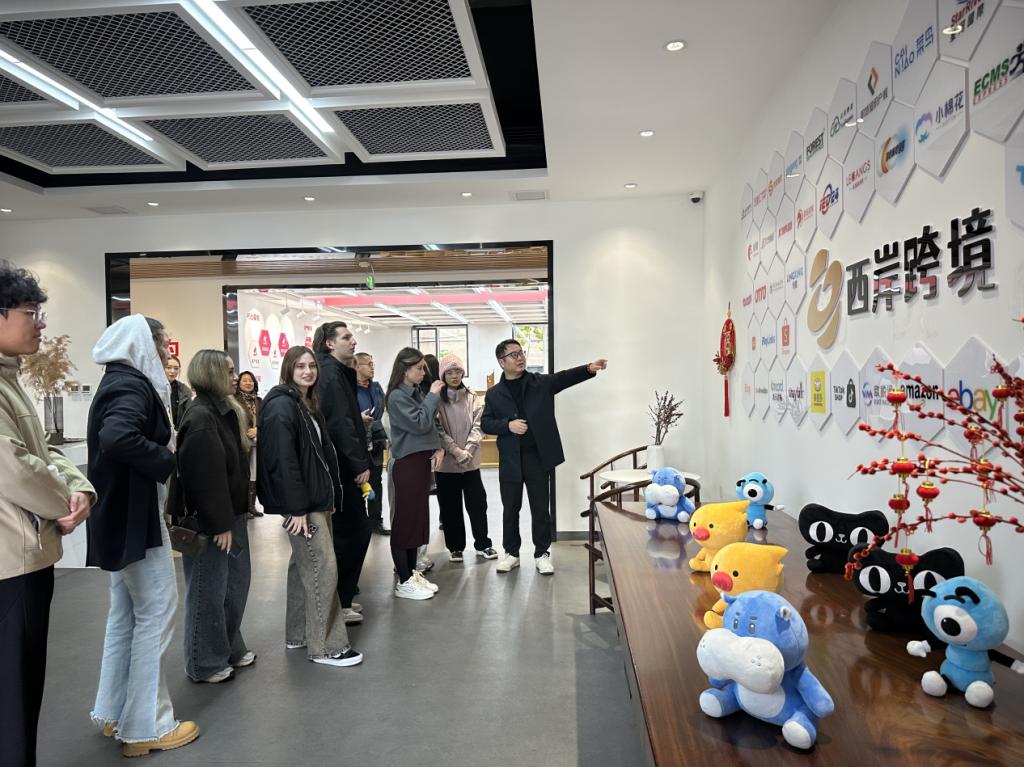 在万晓文总裁的引导下,师生一行首先参观了企业电商运营中心,过程中,万晓文结合企业深耕跨境电商领域的经验,详细讲解了运营模式、发展历程、核心业务板块,尤其重点介绍了国际市场布局中多语言沟通、跨文化协作的关键作用—— 这与永利集团304am登录的专业优势高度契合。实地参观与针对性讲解相结合,不仅让师生对跨境电商的实际运作有了直观认知,更让大家清晰看到:外语能力已成为跨境业务拓展、国际客户维护、跨文化风险规避的核心竞争力,为后续校企围绕“专业适配岗位”的合作奠定了认知基础。
