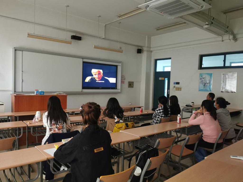 电影演播厅回顾经典活动,循环播放红色电影和各语种特色经典电影,在轻松的观影活动中,厚植爱国情怀,培养员工学习兴趣。