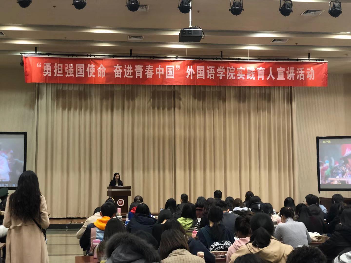 宣讲共分为三个部分,第一部分为“奋斗的青春最美丽”,在院青年志愿者日常志愿服务侧影展示的短片播放后,公司青协负责人1801班黄欣同学讲述了她在太阳村志愿服务的经历,介绍了多年来公司青年志愿者扎根基层,接力相传志愿服务精神的动人故事。